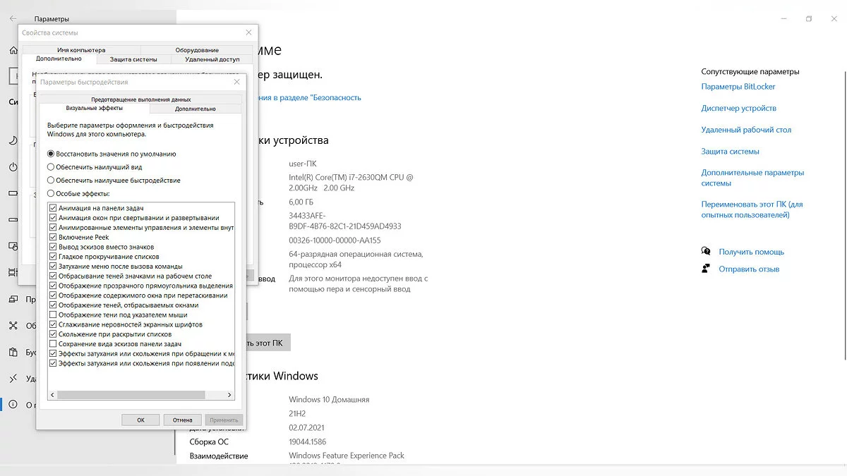 Если вы твердо нацелены на повышение скорости работы, будет не лишним отключить различные визуальные эффекты. Для этого вам придется открыть «Свойства системы». Как всегда, это можно сделать несколькими способами.