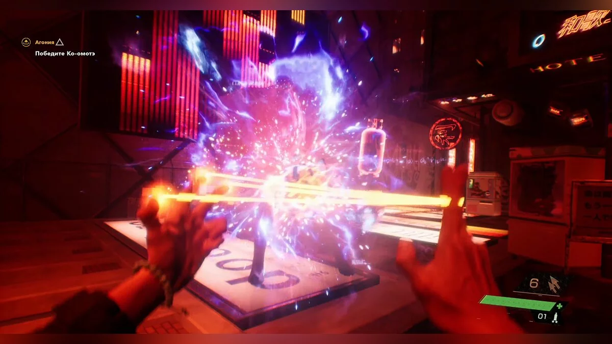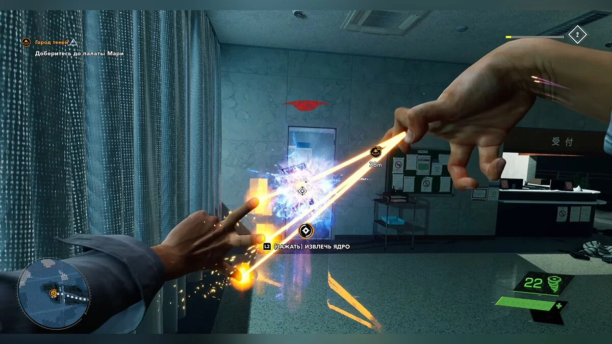 После вступительного видеоролика, в котором игрока познакомят с главным героем Акито, выполняем все указания голоса — учимся блокировать и атаковать врагов. Добираемся по прямой дороге до больницы и поглощаем энергию потусторонней материи. После выполнения этого действия проходим внутрь строения для завершения задания.