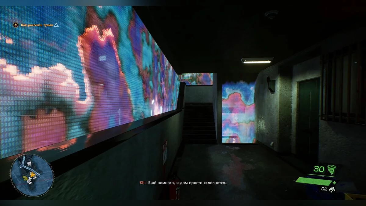 Теперь необходимо за короткий промежуток времени выбраться из завесы, иначе герой погибнет. Поднимаемся на верхний этаж, разбиваем камень и проходим в квартиру в конце лестничного пролёта.