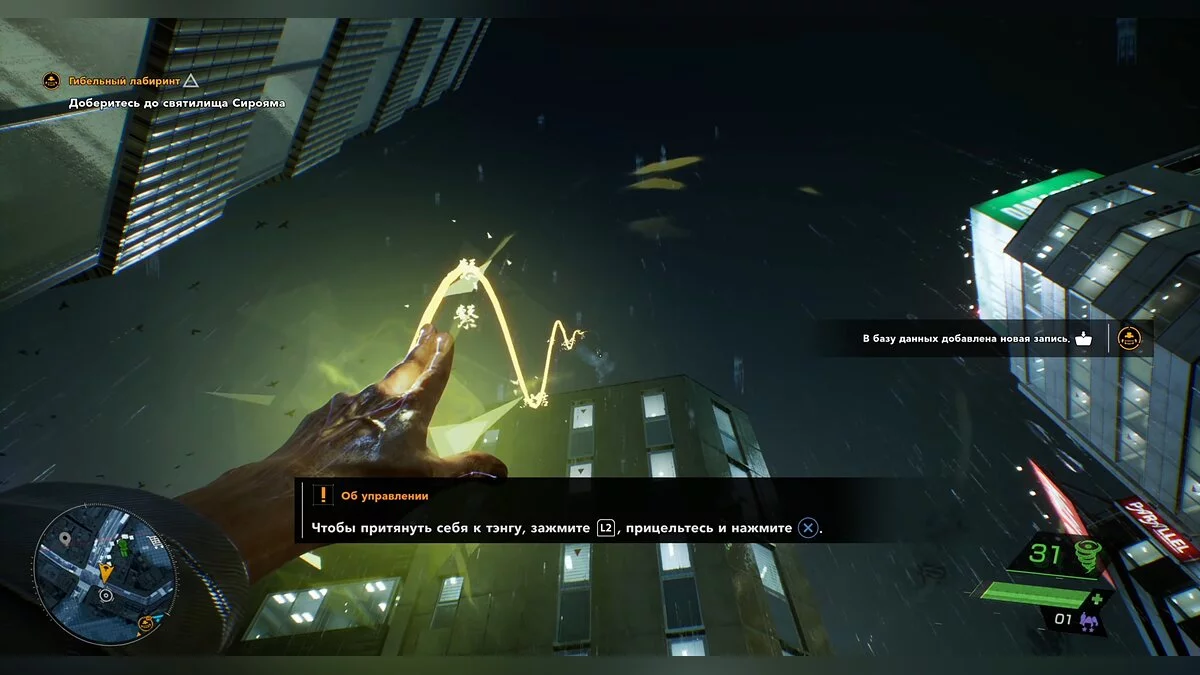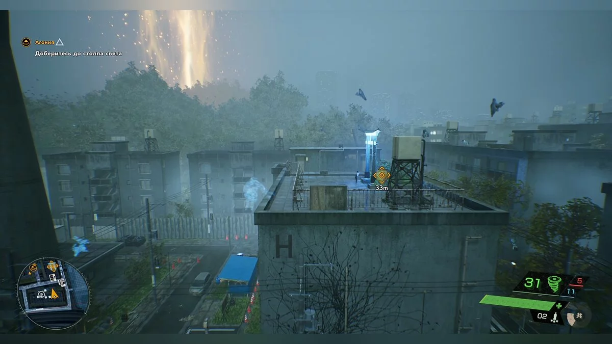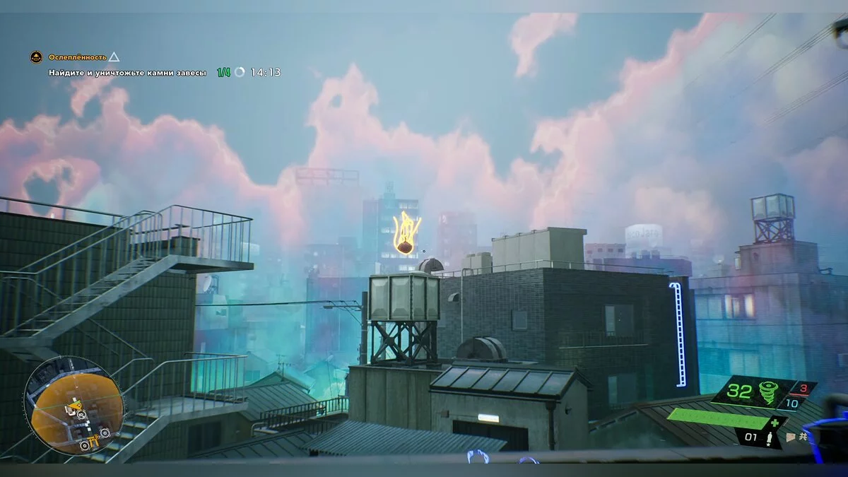 Акито окажется на крыше и научится планированию в воздухе. Откроется доступ к побочным заданиям. Например, в квесте «Генеральная уборка» герою необходимо добраться до указанной на карте точки и зачистить территорию от врагов.