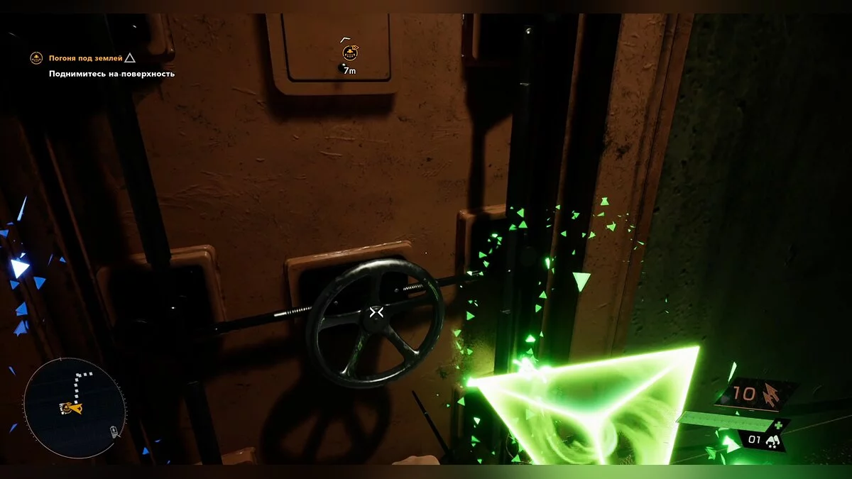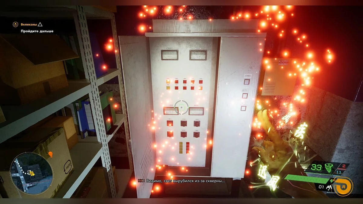 Уничтожаем ядро и активируем рубильник. Двигаемся к точке и обнаруживаем мотоцикл Ринко.