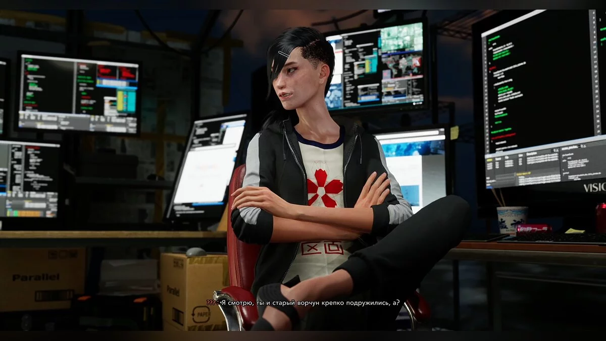 Следуем к указанной точке в квартиру КК. Знакомимся с подругой напарника и выходим на улицу.