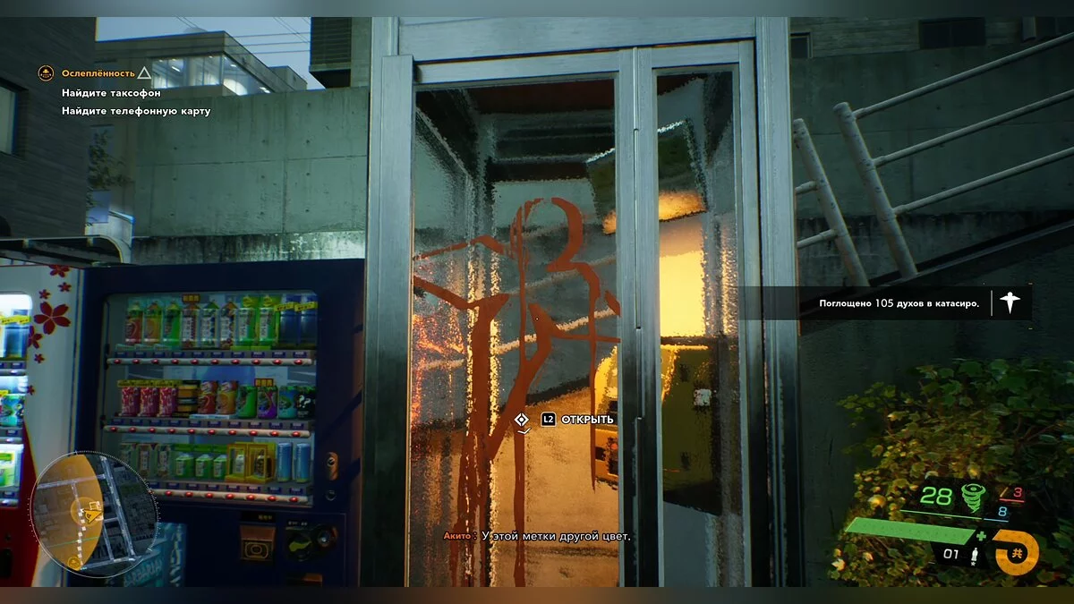 Находим телефонную будку под пешеходным мостом, вводим номер и отправляем духов за завесу. Смотрим короткий видеоролик.