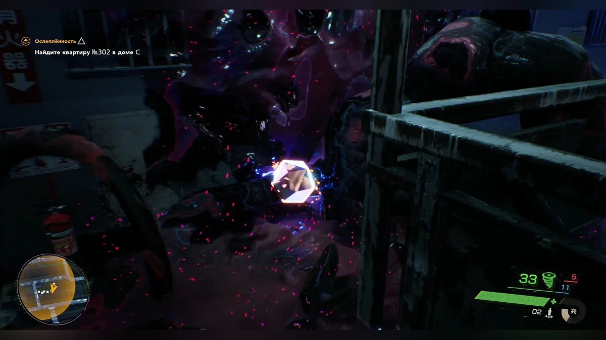 Следуем к жилому комплексу. Игроку необходимо найти блок C. Одна из дверей на третьем этаже закрыта скверной. Уничтожаем ядро, используем ключи и проходим внутрь. Осматриваем квартиру.