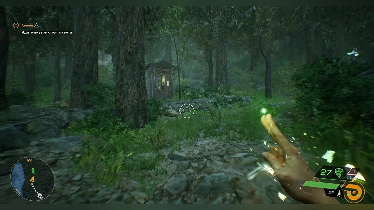 Возле синего шара используем призрачное зрение и следуем за тенью до скверны.