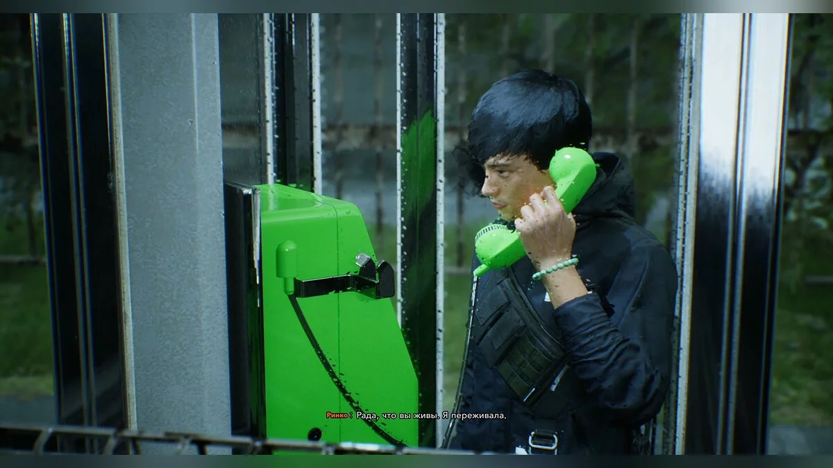 Спускаемся с крыши вниз и используем таксофон для разговора с Ринко.