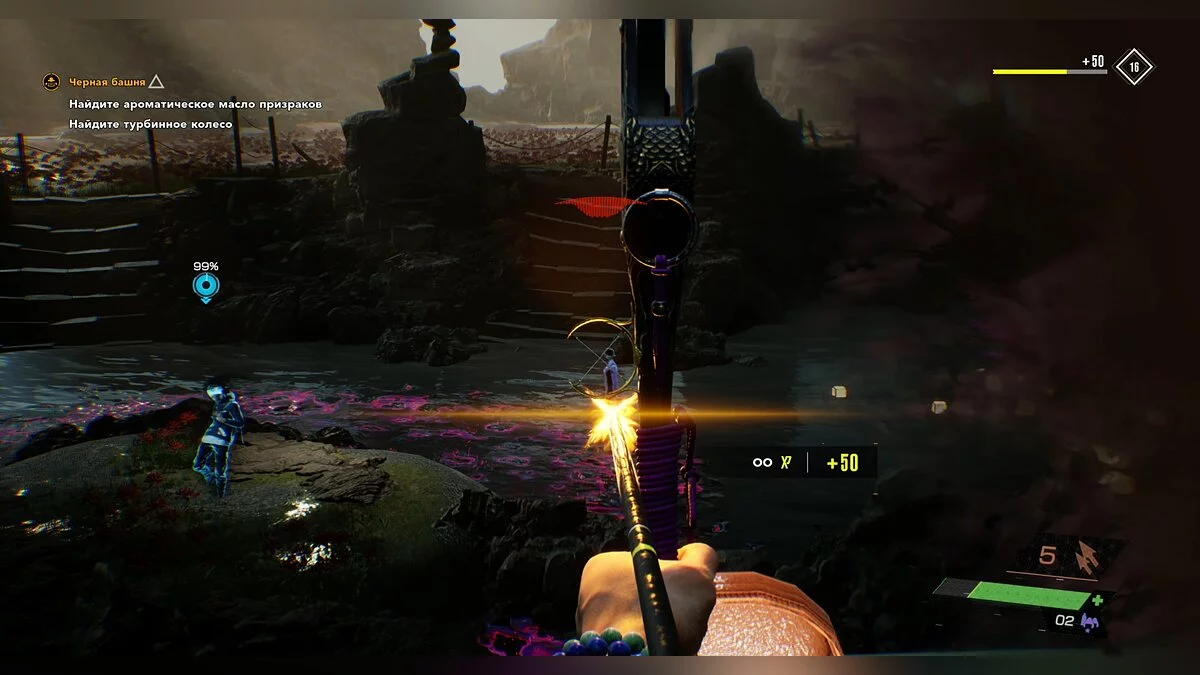 Активируем синюю сферу и следуем за призраком. Побеждаем демонов и добираемся до точки.