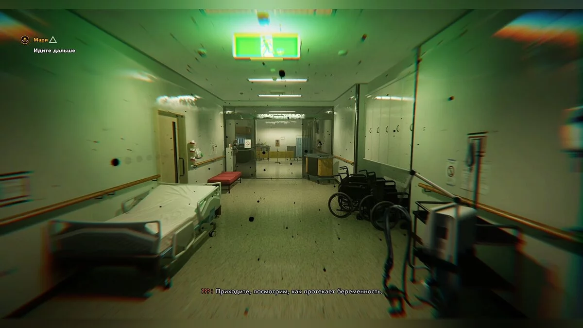Открываем дверь в палату сестры и наблюдаем за кат-сценой — человек в маске Хання и его помощники заберут Мари. Выходим из больницы.