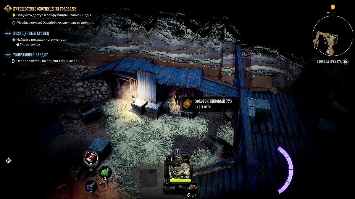 В подвале Олбрайт найдите «золотой пиковый туз». Когда она предложит отправиться с вами, мы рекомендуем согласиться. Шериф обладает максимальным уровнем прокачки и поможет расправляться с врагами. Так как после посещения следующей локации задания охотницы будут завершены, мы также рекомендуем исследовать другие города и шахты, в которых вы ещё не бывали, чтобы найти и выполнить дополнительные квесты.
