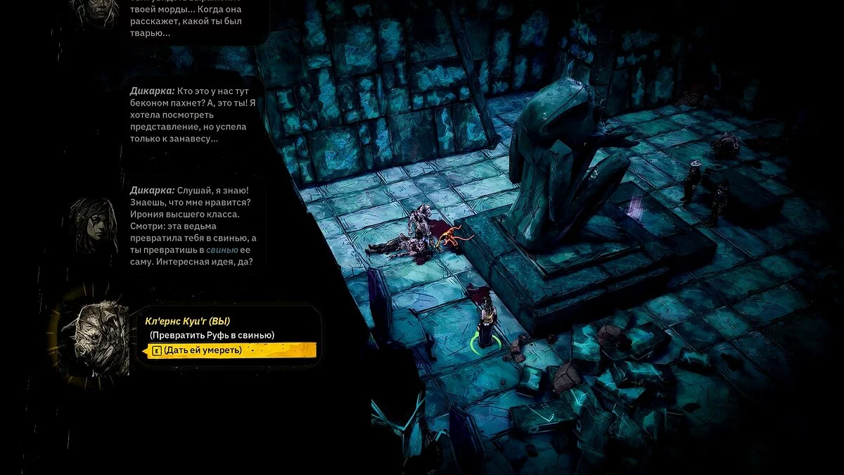 Перед тем, как отправиться в эту локацию, рекомендуем посетить хотя бы одного из четырёх героев и взять их с собой в отряд. Так вы сможете начать следующий сюжетный квест. В качестве спутника мы выбрали Свинолюда.