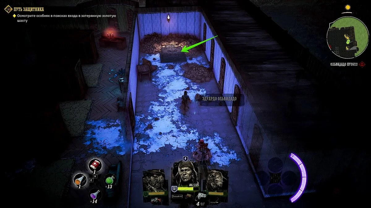 Вернитесь в Ольвидадо Пуэбло, снова встаньте на камни и поговорите с кузеном. Убейте его и всех прожор, после чего войдите в подвал здания. Убейте Дженерозо Ольвидадо, осмотрите шахту на наличие ценных предметов и установите динамит. Вернитесь в Доброе место и сделайте выбор, стоит ли заключать договор со звероловами. На этом кампания Защитника завершится.