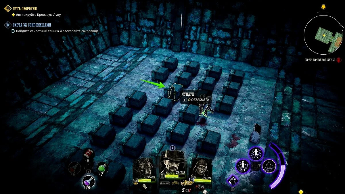 В храме вы найдёте три комнаты. В комнате справа встаньте на плиту и убейте всех зомби. Заберите первый шар. Исследуйте помещение по центру и избавьтесь от призраков, чтобы получить второй шар. В комнате слева вы найдёте 26 сундуков, в одном из которых лежит последний шар. Если пытаться открыть ящики наугад, то герой будет получать урон. Вам нужно открыть верхний ящик в третьем ряду справа.