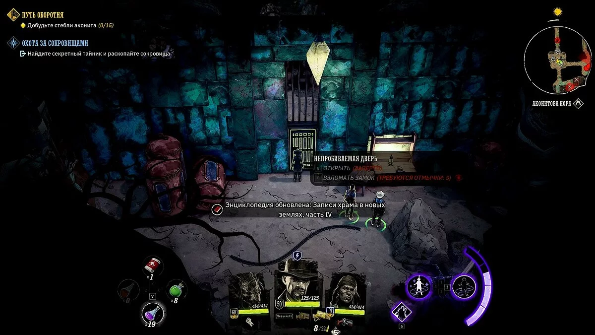 Следуйте в Аконитову нору и убейте всех онейр. Держитесь левой стороны, чтобы добраться до склада. Дверь заперта, но вы можете открыть её при помощи пяти отмычек. Если у вас их нет, то отправляйтесь в правую сторону и обойдите локацию через штольни с ядовитыми растениями. Для этого также понадобится динамит. Найти его можно в карманах убитых онейр.