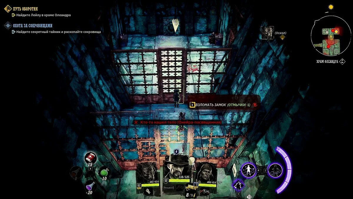 Зачистите храм, откройте решетку кнопкой и взломайте вторую при помощи пяти отмычек. Убейте онейру, заберите ключ. Сперва откройте клетку слева, чтобы освободить Райана Моргана. Вы получите 5 единиц репутации и узнаете о секретном переключателе рядом с курильницей.