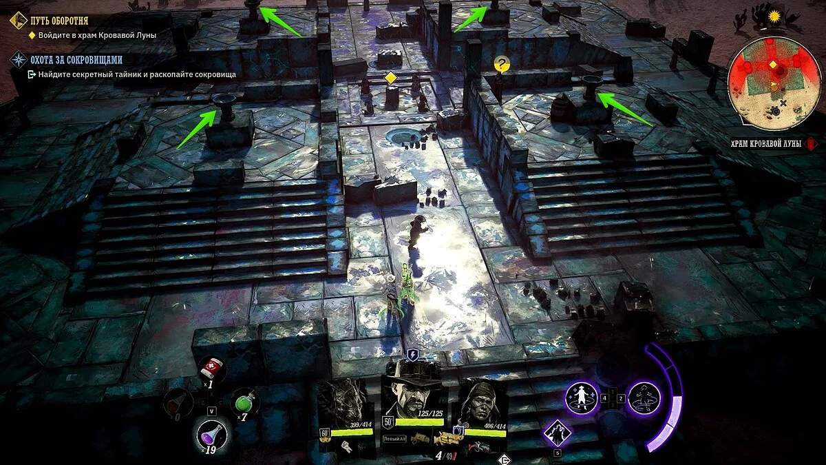 Доберитесь до отмеченной локации и убейте врагов. На поверхности можно найти окаменелую реликвию. Когда будете готовы, вернитесь ко входу в храм и взаимодействуйте с четырьмя чашами. Сожгите в них стебли аконита, чтобы открыть проход.