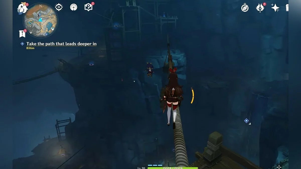 - Идём по канату от точки телепорта и поднимаемся по лестнице выше.