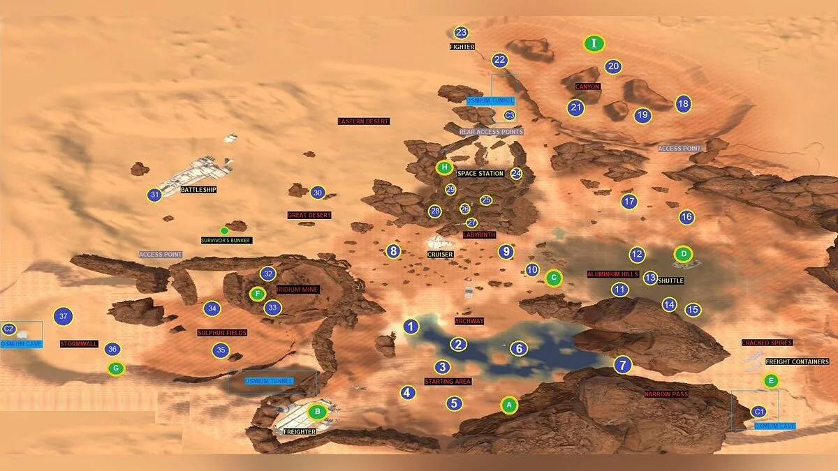 - Золотые (Golden Chests) — буквами от «A» до «I». Ранее в игре было только девять сундуков, однако на данный момент можно обнаружить ещё два ящика, которые не отображены на скриншоте.