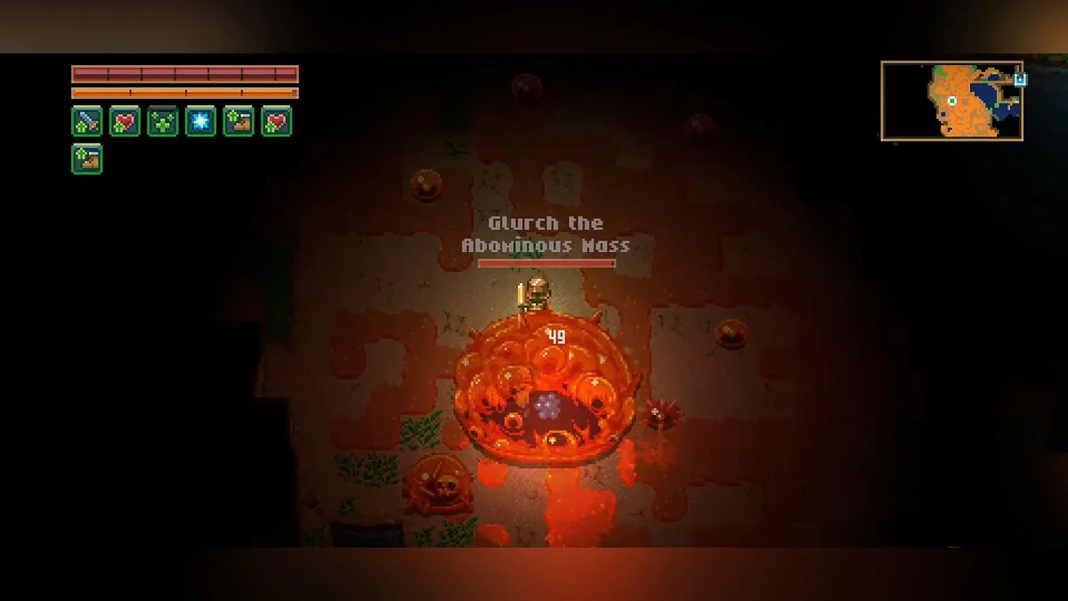 Первым главным боссом является Глурч-мерзкая масса. Глурч появляется недалеко от начала игры, а потому найти его можно на самых ранних этапах приключения.