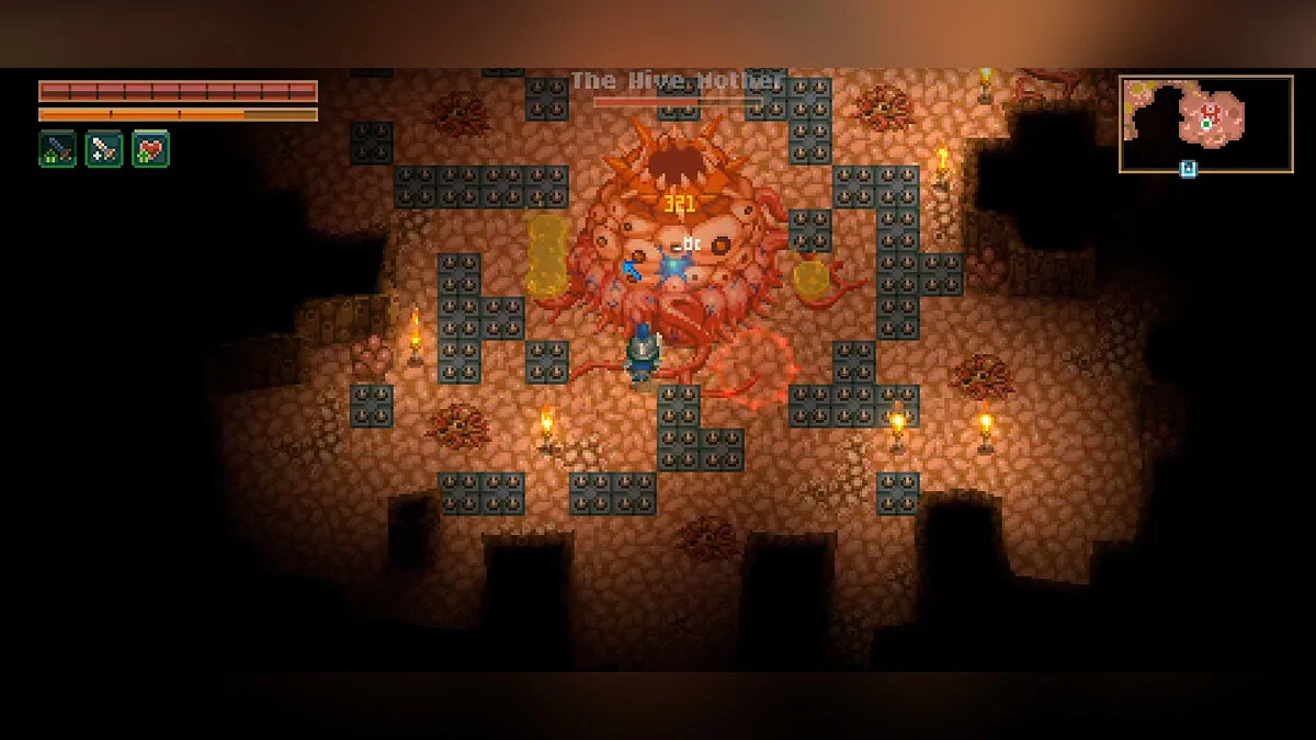 Несколько личинок вокруг босса поранят вас, если на них наступить. Рекомендуется также раскопать и расширить пространство вокруг монстра, чтобы у вас было больше места для передвижения.