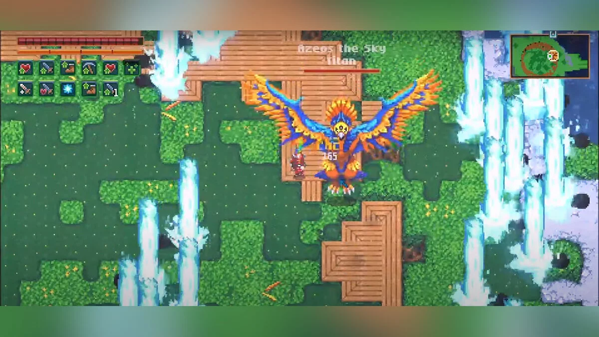 Азеос открывает тройку необязательных боссов. Чтобы добраться до него, нужно победить всех трех предыдущих и использовать их самоцветы для питания ядра. Как только выполните эти условия, откроется новый биом, в котором вы столкнетесь с небесным титаном.