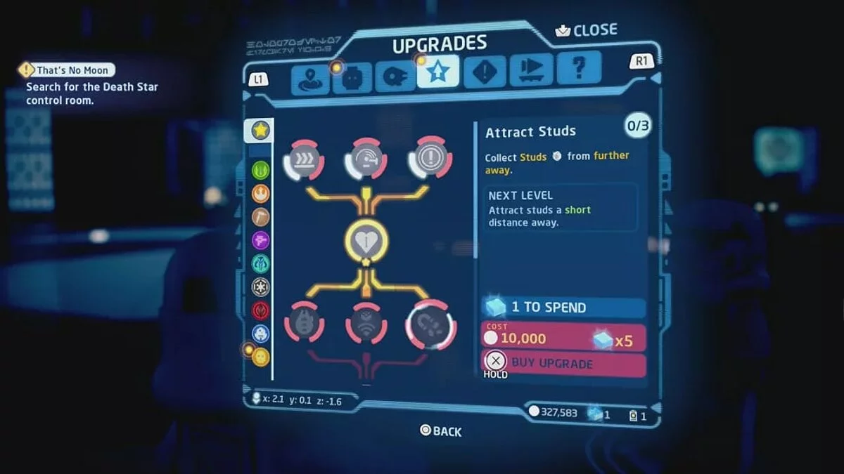 Существует конечная цель при сборе монеток в миссиях. Игроку необходимо заполнить все три стержня в верхней части экрана и достичь статуса «Истинного джедая» (True Jedi) текущего уровня, открыв три кайбер-кирпича (Kyber Bricks), чтобы получить обновления класса героя.
