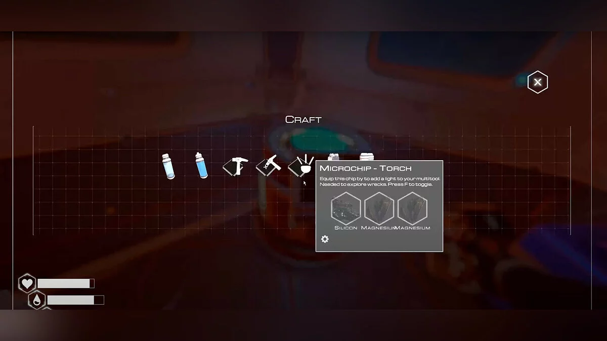 Обратите внимание, что все функции устройства в руках астронавта регулируются чипами, которые также занимают место в рюкзаке. Как и другие предметы их необходимо крафтить. Только после получения определенного чипа можно строить или разрушать здания.