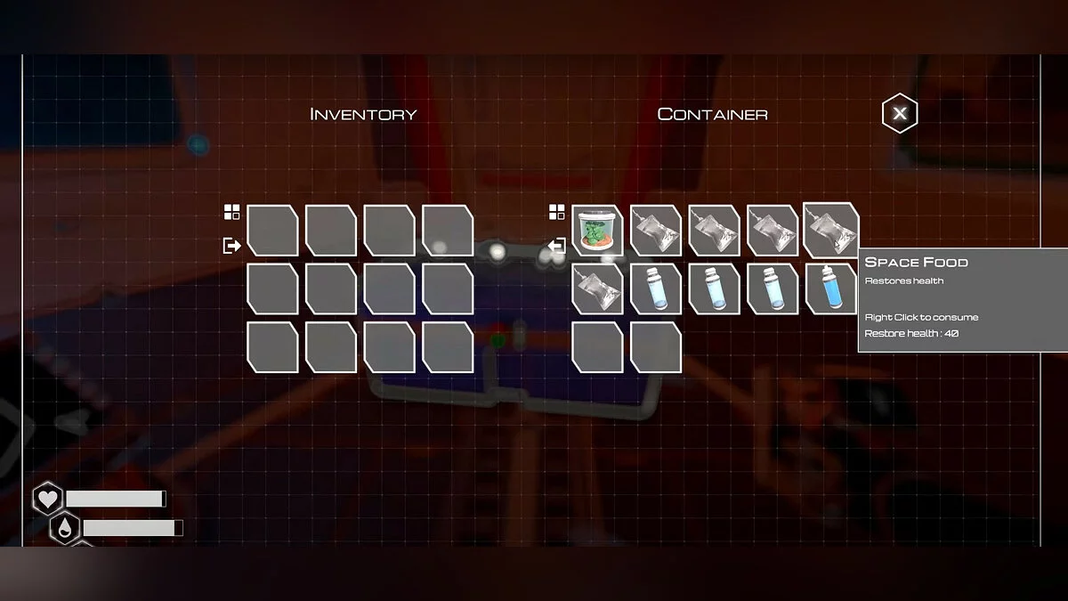 Еда хранится в специальных контейнерах, воспроизвести которые в начале игры нельзя. По всей территории разбросаны синие ящики, в которых будет пара дополнительных пайков, однако полагаться на это не стоит. Гораздо важнее семена, которые также можно найти в разных местах вокруг базы.