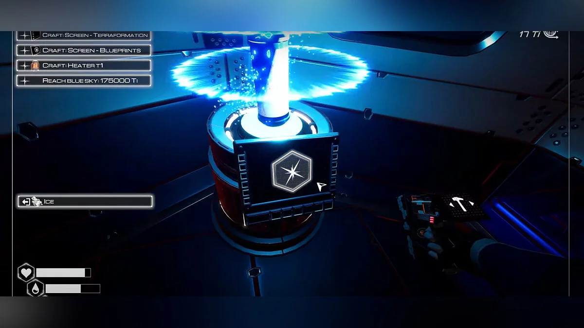 С водой и кислородом ситуация немного проще. Собрав нужное количество льда, вы без труда получите чистую воду на станции для ремесла. Кислород пополняется на базе автоматически, но быстро расходуется в процессе исследований. Чтобы увеличить запасы, создайте кислородный баллон. Со временем его можно улучшить, что сделает вылазки за ресурсами гораздо безопаснее.