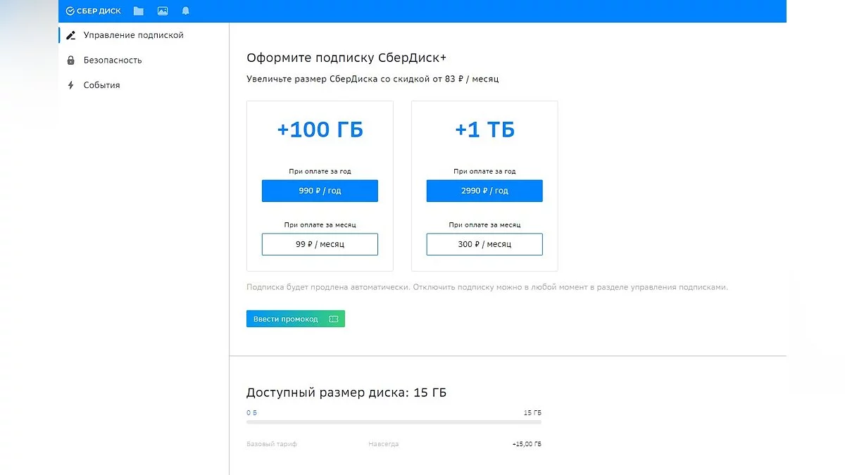 Облачный сервис от «Сбера» на прямую не связан с онлайн-приложением банка, поэтому им могут воспользоваться все желающие. Бесплатно вам доступны 15 ГБ облачного пространства, но при желании можно увеличить объём до 1 ТБ.