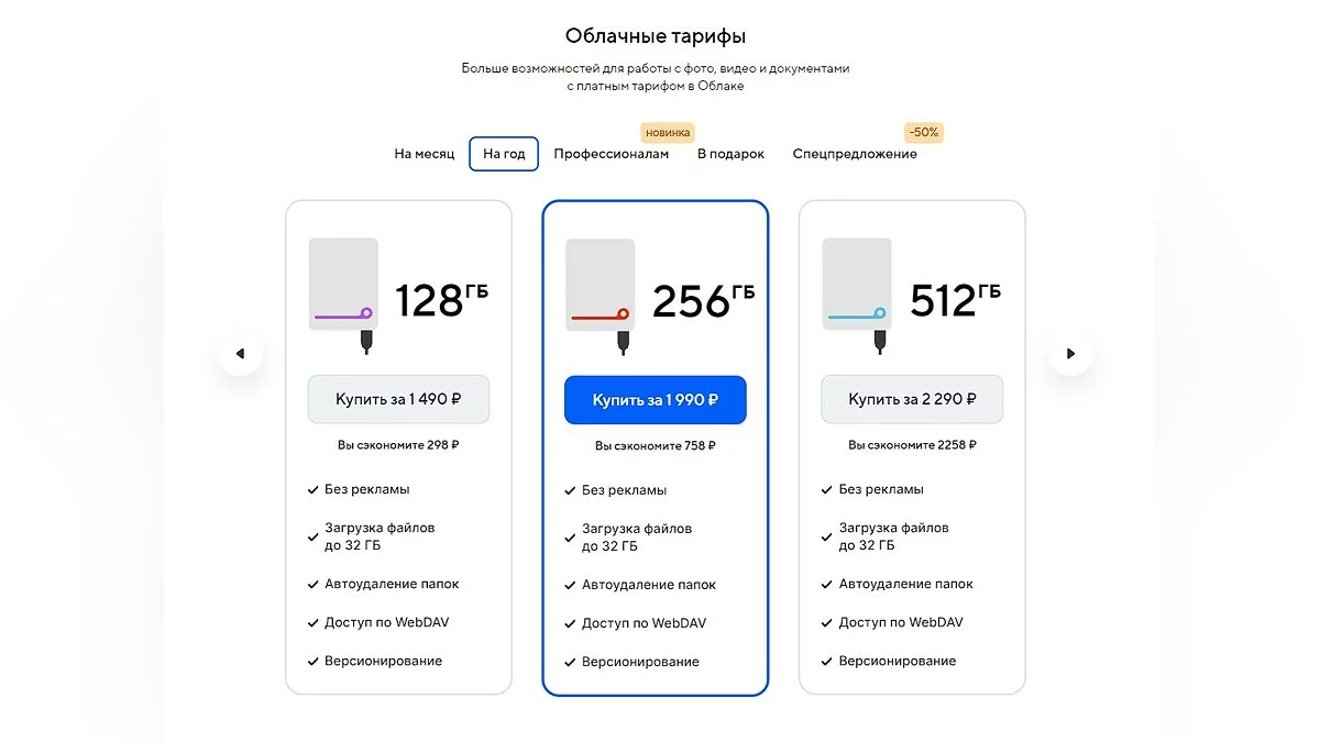 - Деньги. Облачные сервисы предоставляют тарифную сетку, в которую входит бесплатный пакет. В «Яндекс.Диск», например, бесплатно можно хранить до 10 ГБ данных. С каждым годом наше цифровое богатство увеличивается, появляются новые фотографии, видеозаписи и другие файлы, которые нуждаются в резервном хранении. Вместе с этим хранилище нуждается в расширении, за которое придётся ежегодно платить.