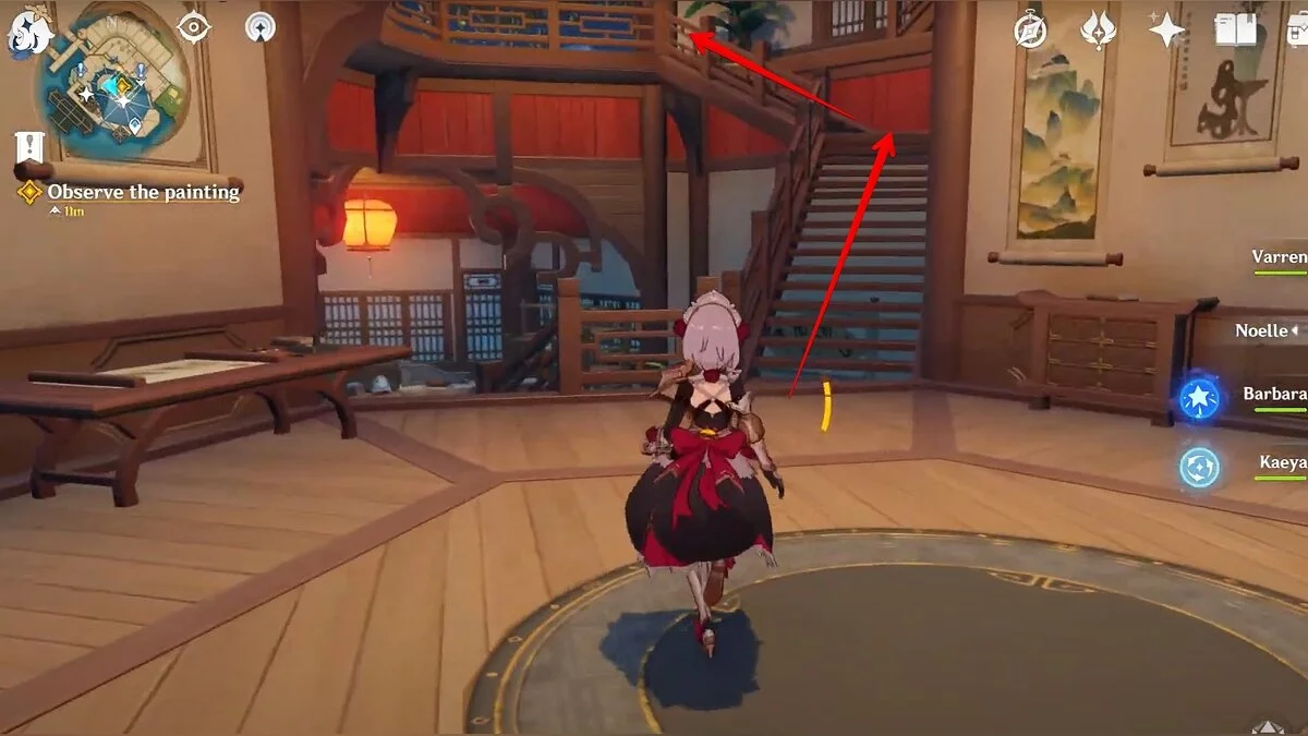 Теперь вам необходимо отправиться на кухню и посмотреть кат-сцену. Затем вернитесь к повару и расскажите ему о том, что видели. Снова поговорите с Верр Голдет. Она упомянет картину, которая находится этажом выше. Поверните направо и поднимитесь по лестнице. Ориентируйтесь по нашим скриншотам.