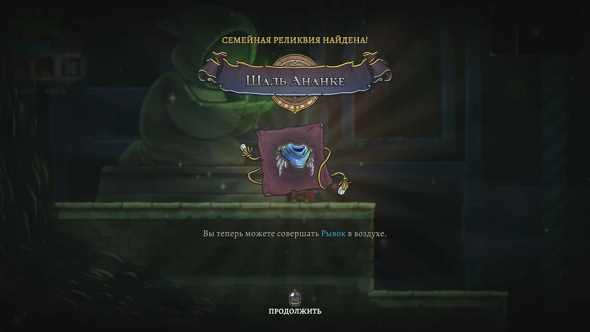 Впервые вы можете встретиться с семейной реликвией в нижней части цитадели Агарта. Она представится вам как Ананке Шали. Согласитесь выполнить её испытание, завершите его и получите первое улучшение — «Шаль Ананке». Этот предмет позволяет совершать рывок в воздухе. С этого момента каждый новый герой сможет использовать данное умение.