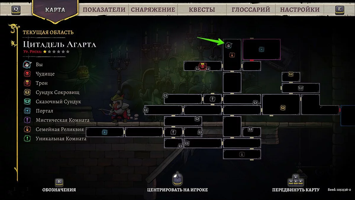 Примечание: расположение комнат в вашем прохождении может отличаться от представленных ниже скриншотов. Это связано с тем, что после каждой смерти биомы выглядят по-разному.