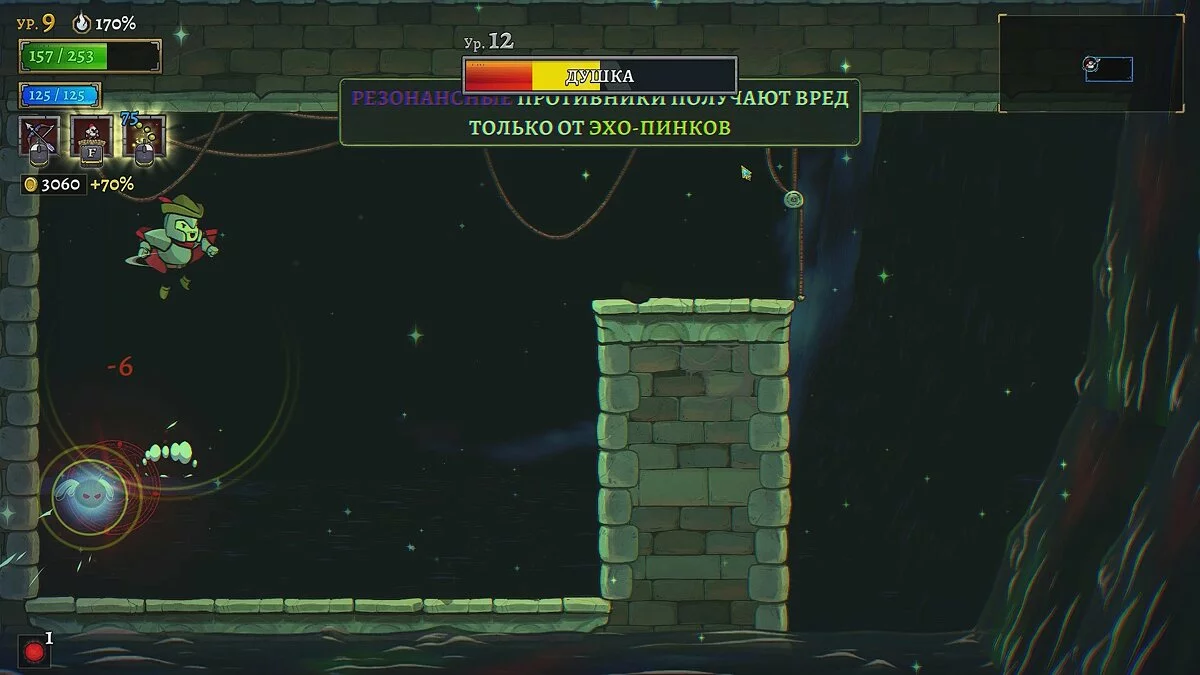 Чуть позже вы познакомитесь с резонансными противниками. Если вы тщательно осматривали все комнаты, то наверняка встречали их. Подобных врагов нельзя убить обычным оружием, только эхо-пинками.