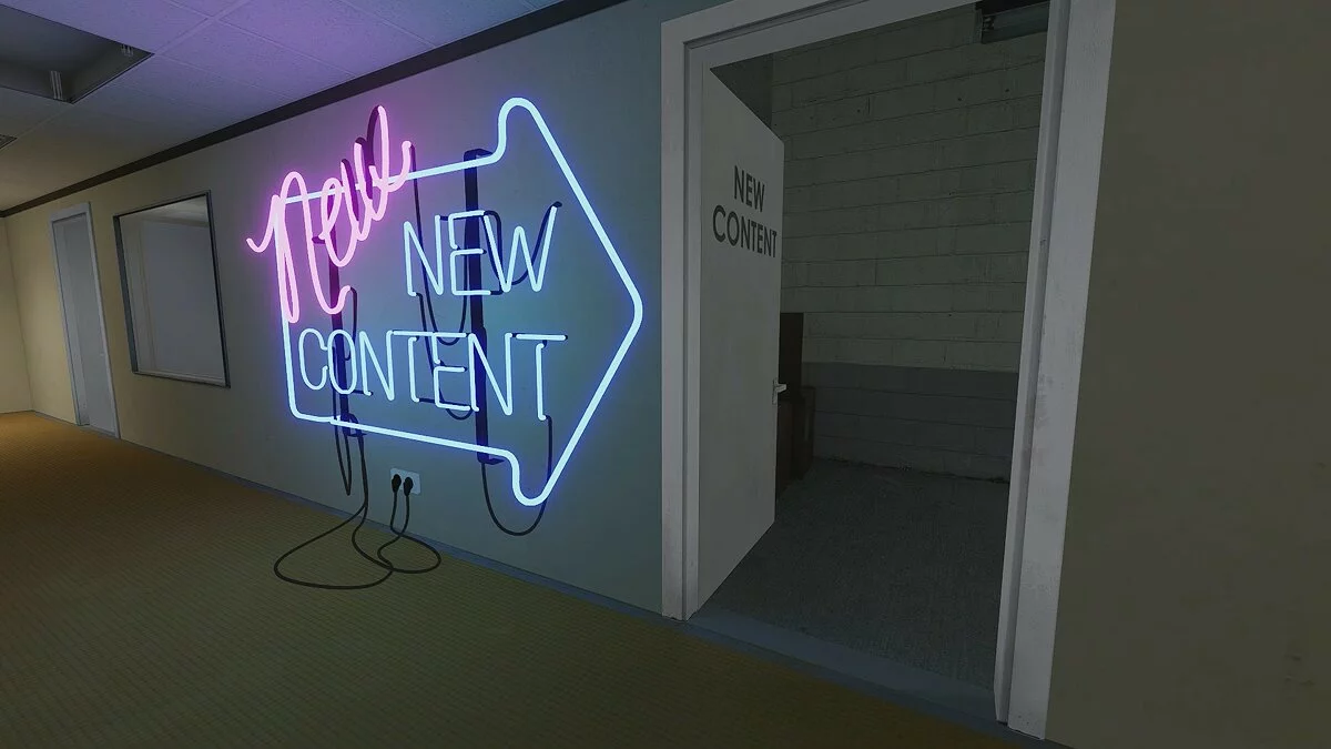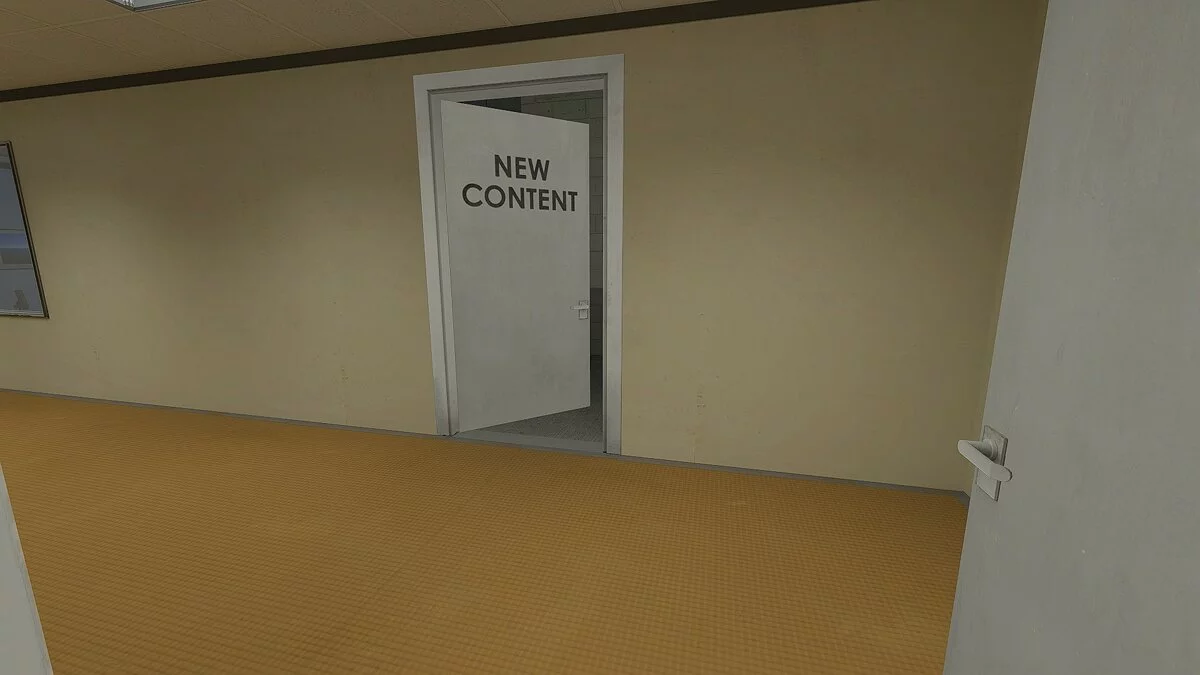 После прохождения «Зоны памяти» снова пройдите через дверь с надписью «Новый контент» (New Content) и следуйте инструкции Рассказчика. Он представит вам The Stanley Parable 2 и по-настоящему новый контент, который планирует внедрить в игру.
