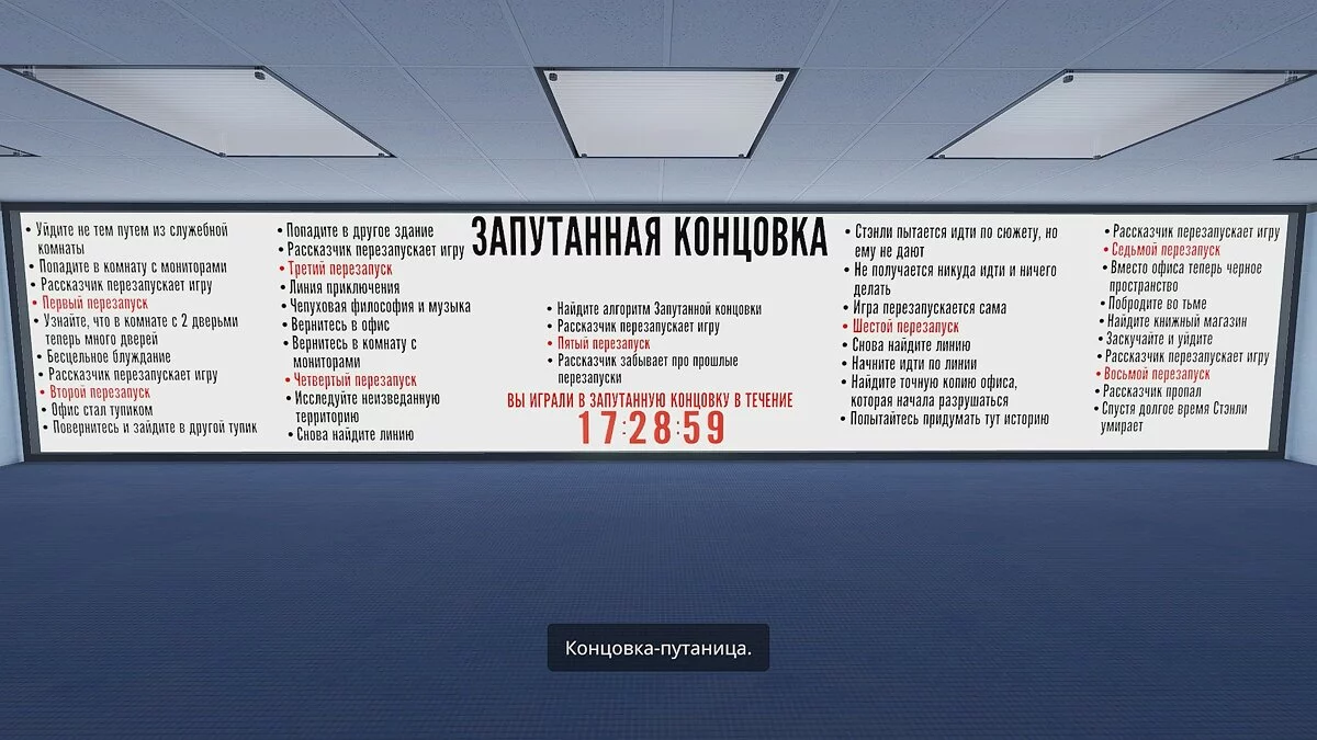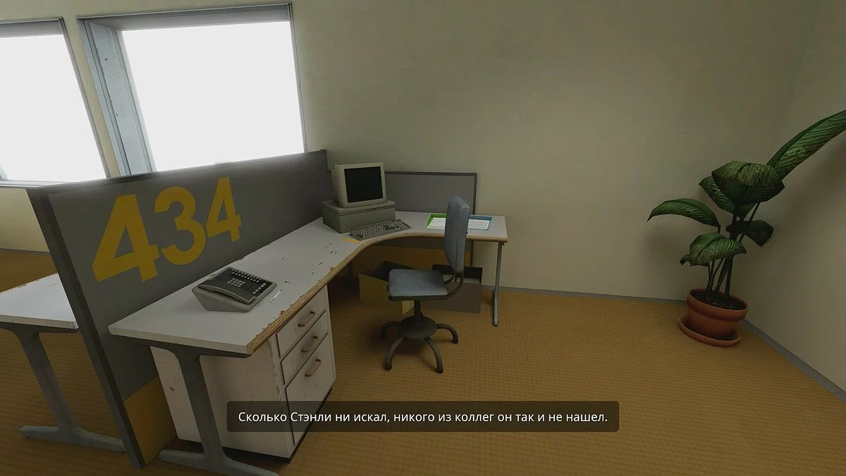 Следуйте по коридорам и найдите изменённый кабинет Стэнли. Когда Рассказчик закончит монолог, игра перезапустится.