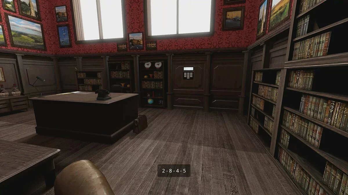 Покиньте офис и бегите в дверь слева. Поднимитесь в кабинет начальника. Наверняка в этот момент потайной проход откроется автоматически. Если этого не произошло, на стене справа от стола введите код «2845». Спуститесь на нижний этаж при помощи лифта.
