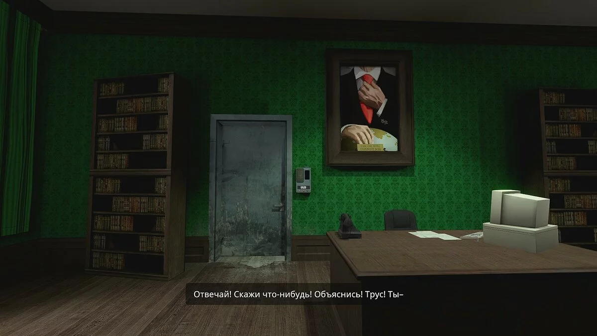 Оказавшись перед двумя дверьми, войдите в левую дверь и поднимитесь в изменённый кабинет начальника. Рассказчик попросит использовать голосовой пульт слева от стола. Ничего не предпринимайте, чтобы он опять перезагрузил игровую сессию.