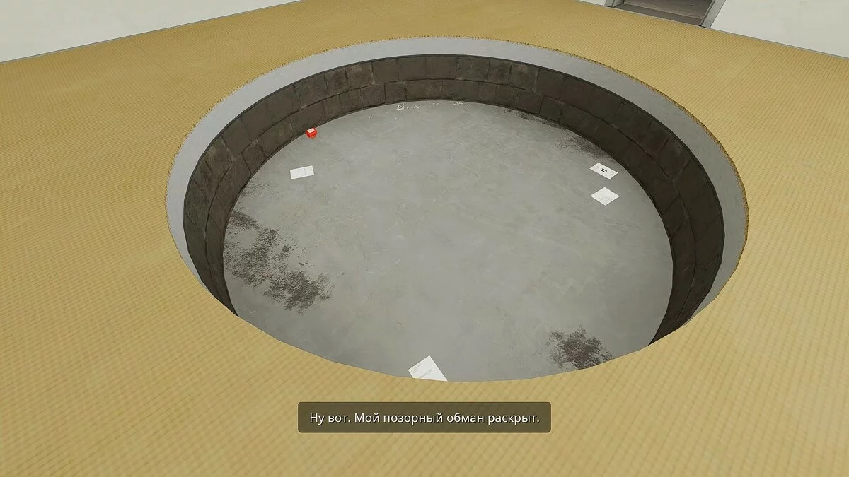 В этом случае вы окажетесь над комнатой с дверьми и увидите Стэнли, с которым общается Рассказчик. После титров игра перезапустится автоматически.