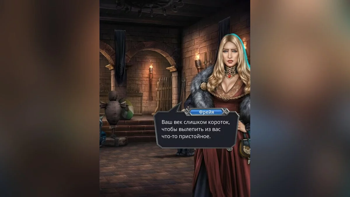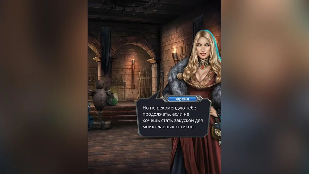 Героиня вместе с Фрейей покинет зал. Богиня расскажет девушке об испытании.