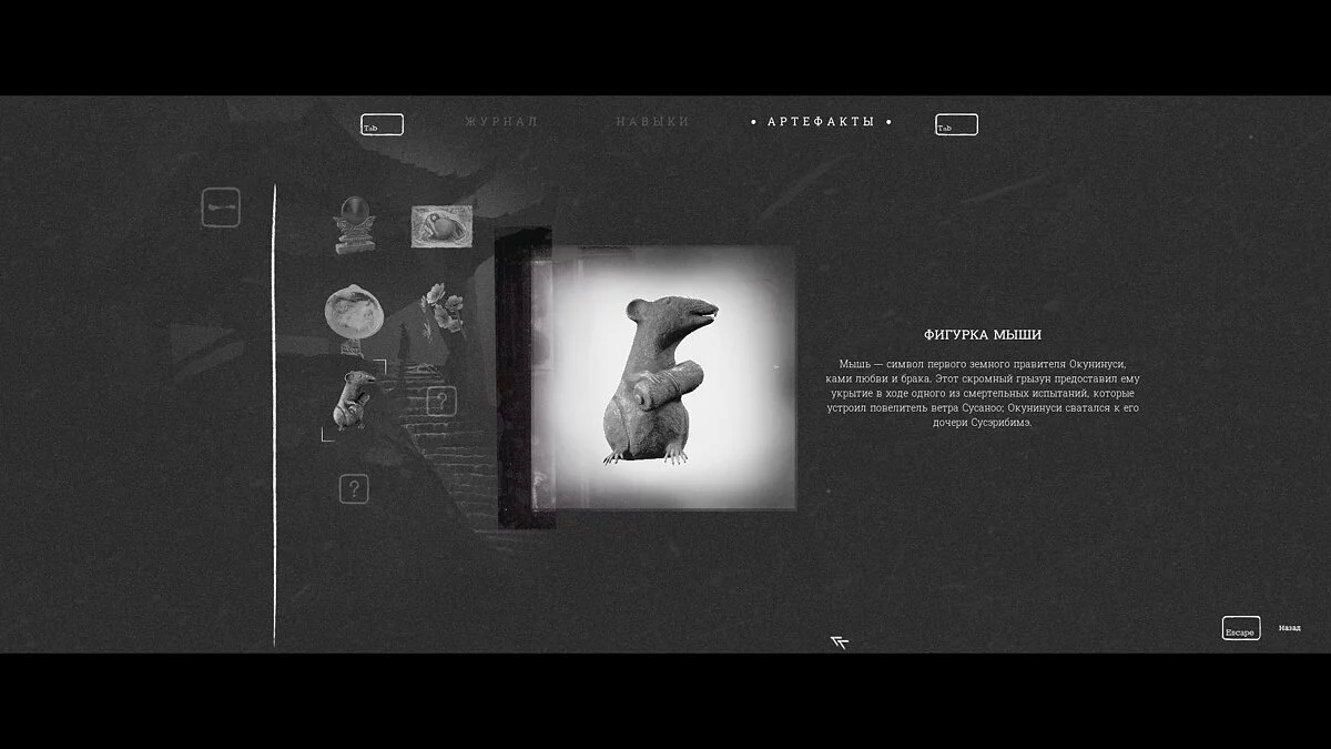 Следующий артефакт можно найти после схватки с первым врагом. Победив противника, продолжайте идти, пока не наткнётесь на очередной алтарь. Обойдите кирпичную стену возле святилища, чтобы зайти в небольшой двор. Здесь вы сможете найти «Фигурку мыши» на столе в левой части локации.