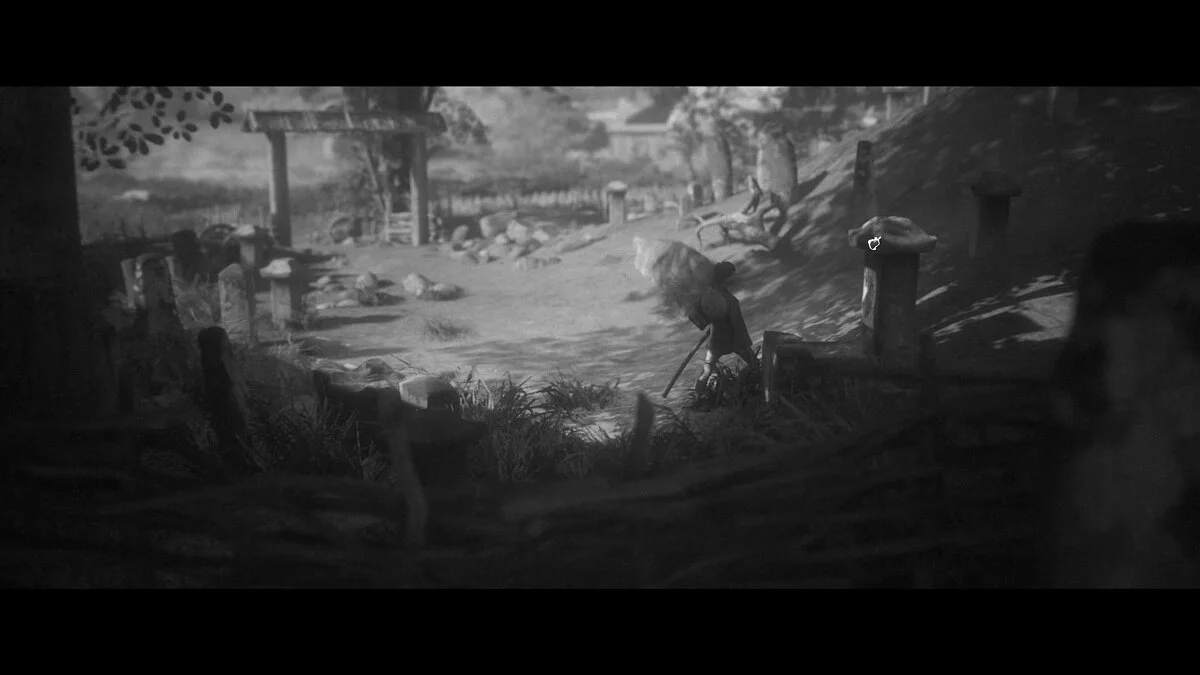 Двигайтесь дальше до кат-сцены, в которой вы увидите деревню, подвергшуюся нападению бандитов. После ролика проберитесь в горящее поселение и пройдите до конца центральной дороги, к тропинке, заваленной обломками. Передвиньте тележку, чтобы расчистить путь к следующей области. Слева на куче щебня лежит коллекционный предмет «Эма».