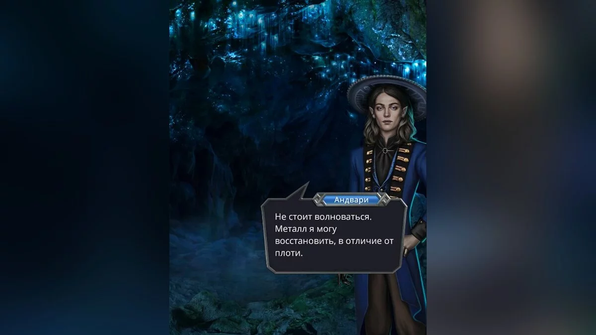 Мужчина расскажет о некоторых событиях и предложит продвигаться дальше по пещерам. Андвари спросит о текущем состоянии девушки.
