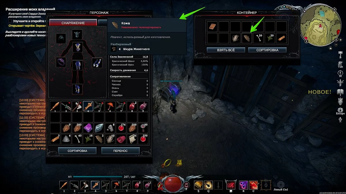 Кожа — очень важный материал в V Rising, без которого не удастся скрафтить лучшее снаряжение для своего вампира. Выполняя сюжетные задания, вы доберётесь до момента, когда игра впервые предложит повысить уровень Сердца Замка — главного элемента вашего убежища. Здесь то и пригодится этот ресурс.