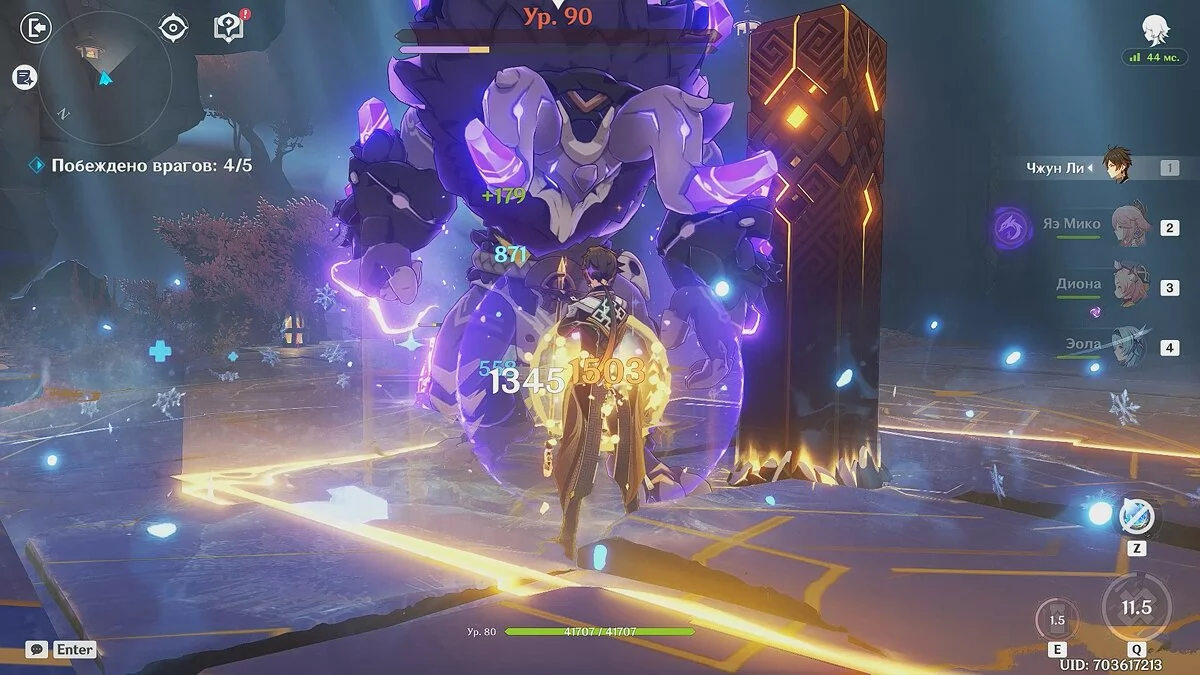 В сражении с боссом тактика немного изменится. Предпочтительно атаковать только Чжун Ли, так как у него огромное количество здоровья и действенный взрыв стихий. Когда босс начнёт выпускать часовых руин, сперва наносите удары хилером, затем используйте активные навыки Чжун Ли. Как только в вашем распоряжении окажется щит, выбирайте Нин Гуан и Горо, чтобы добить нужного врага и продолжить сражение.