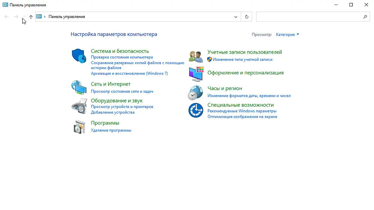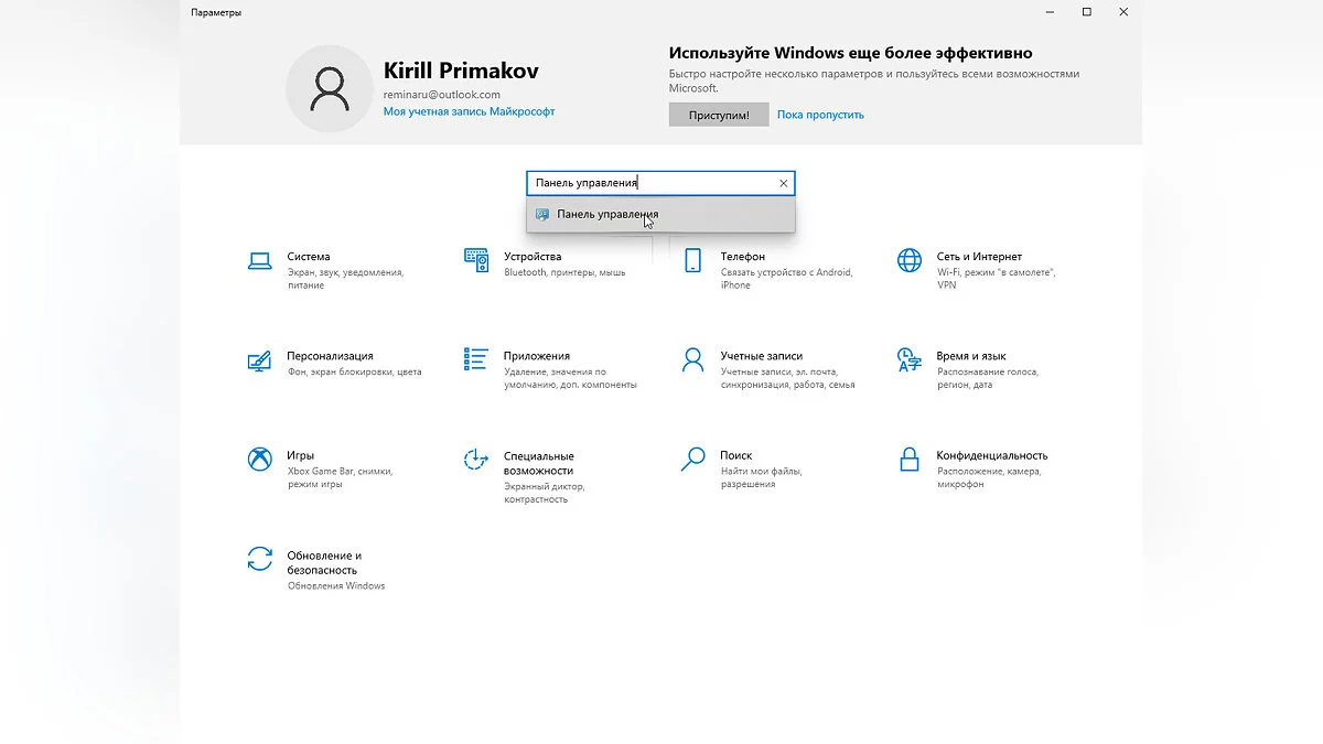 - В строке поиска введите «Панель управления» и откройте её при помощи ЛКМ.