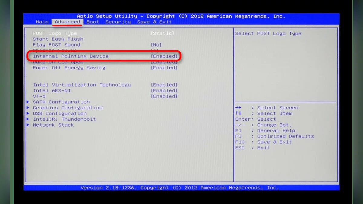 Как отключить тачпад в BIOS