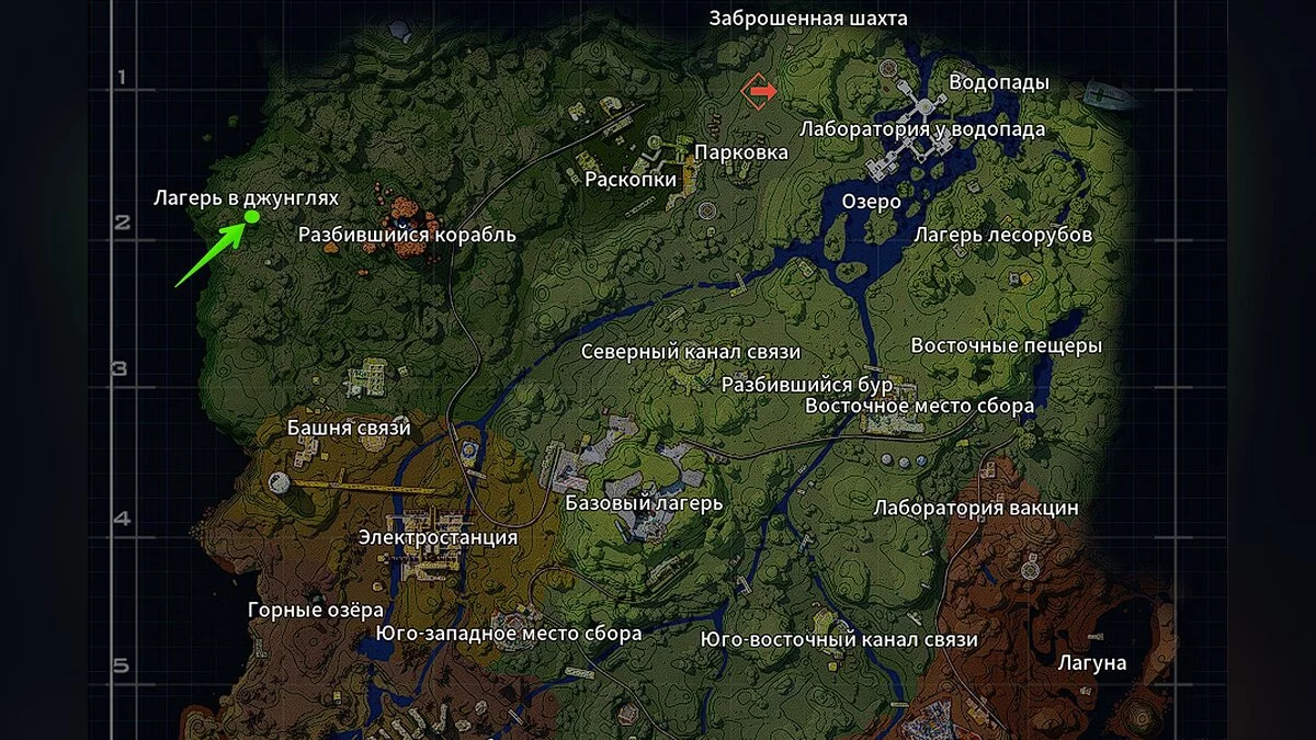 Последнее место появления лучшего оружия на карте «Яркие пески» — Лагерь в джунглях. Стоит предупредить, что это опасное место, которое населяют самые сильные и агрессивные монстры.