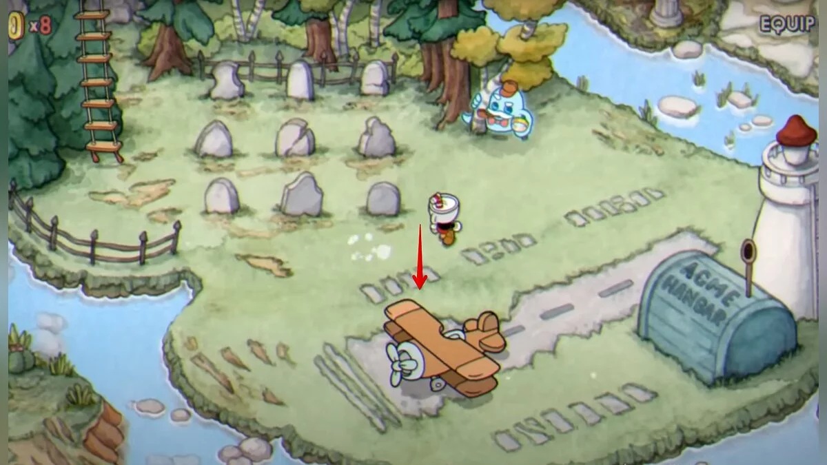 Ниже кладбища есть самолёт. Садитесь на него, чтобы начать сражение.