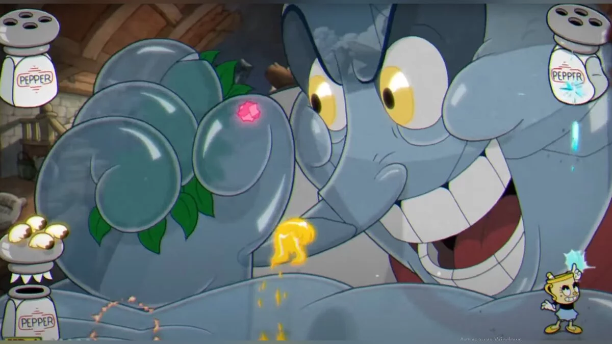 На данном этапе повар неуязвим, поэтому вам придётся стрелять только по перечницам. Когда у перечницы кончится шкала здоровья, она полетит в босса. После этого предмет вернётся на своё место. Для завершения этапа нужно, чтобы повар получил 10 таких ударов.